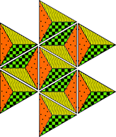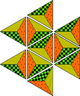 Then he rotates the whole shape 90 degrees clockwise again and adds tiles to the sides as before.